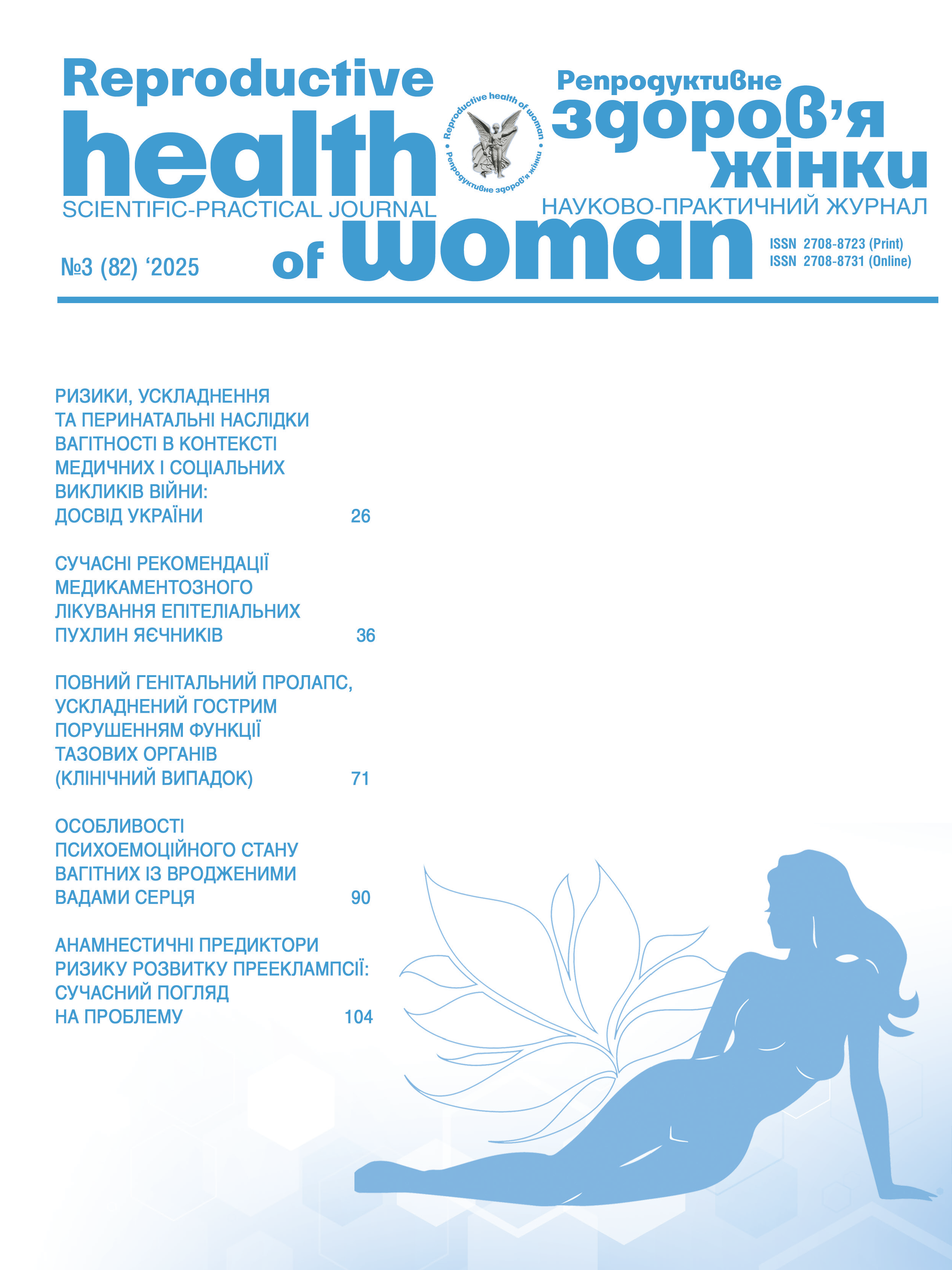 Науково-практичне видання «Репродуктивне здоров'я жінки» – це журнал з відкритим доступом, який забезпечує публікацію наукових досліджень у всіх галузях науки про здоров'я жінки за критеріями оригінальності, актуальності, міждисциплінарного інтересу.